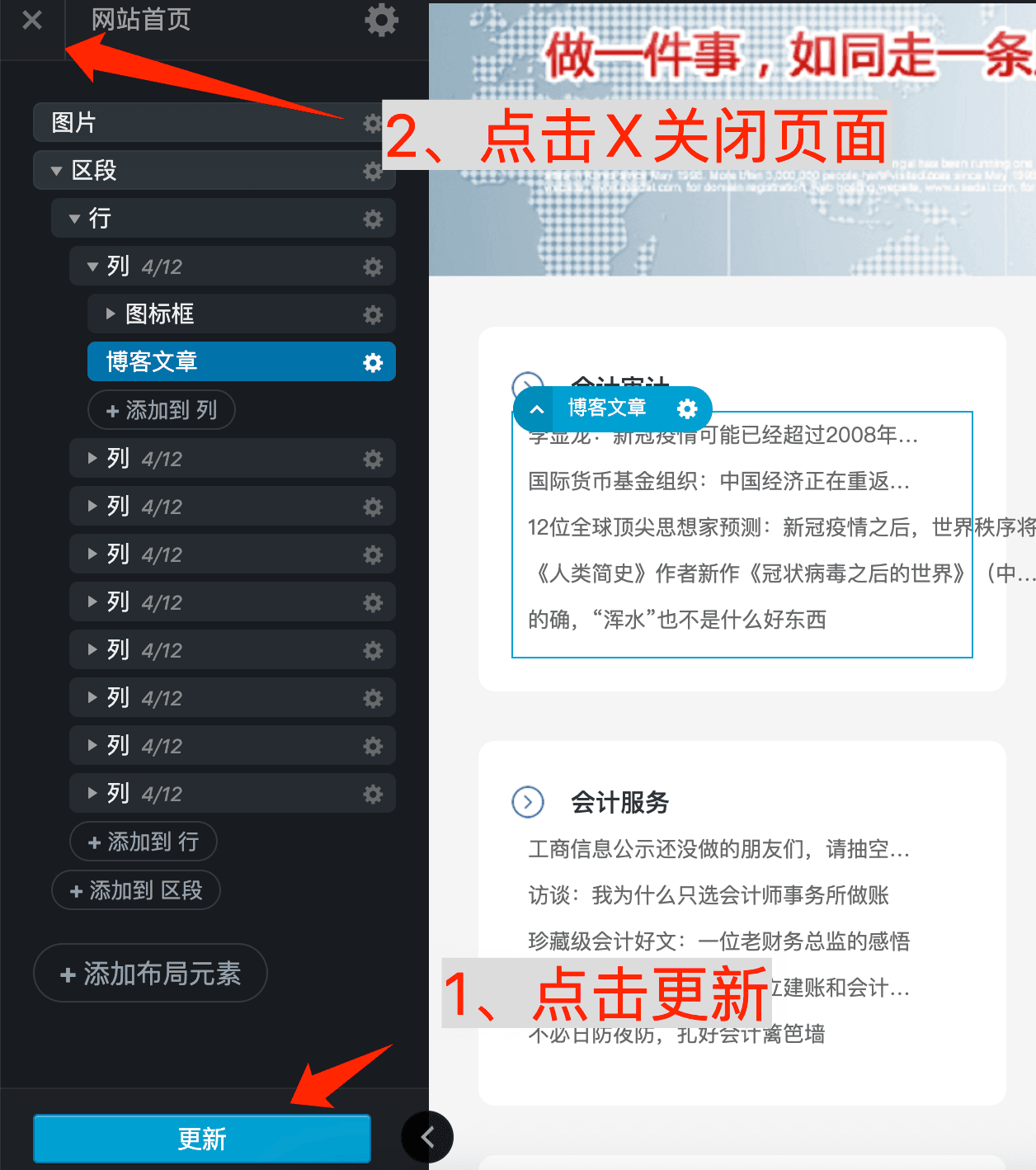 自定义文章:可以自己选择需要调用的文章,并且可以上下拖动排序