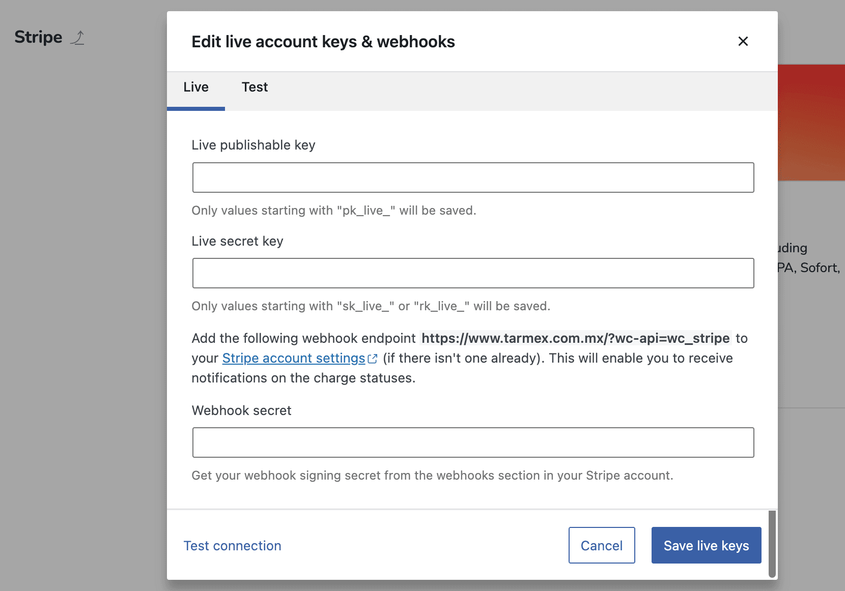 将上面的API 信息填入我们自建站的后台(这个是我们自建站后台,不是stripe后台)