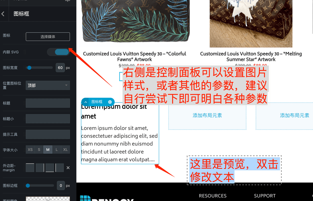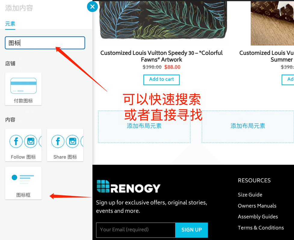下面以演示图标框的方式演示添加具体的元素,上面几个操作是通用的基础操作