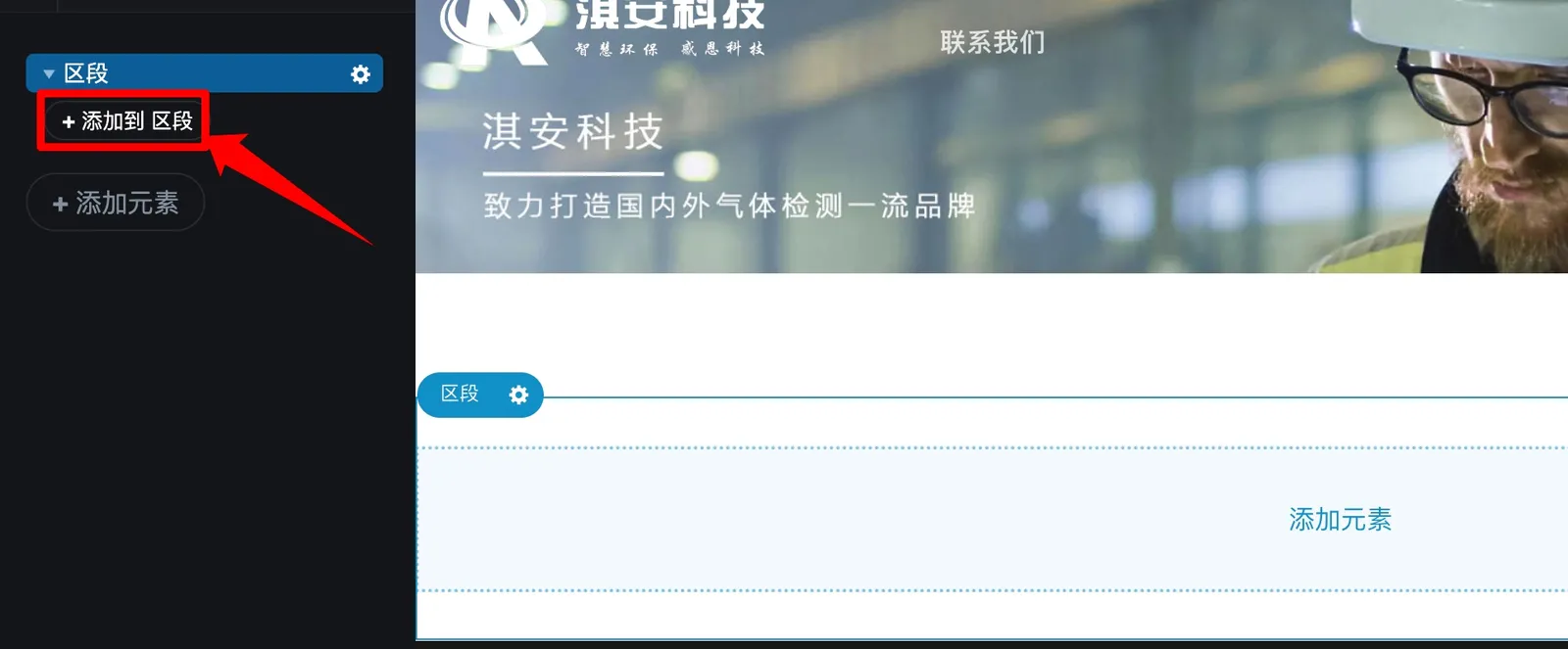 2.1、点击添加元素–选择《区段》 #