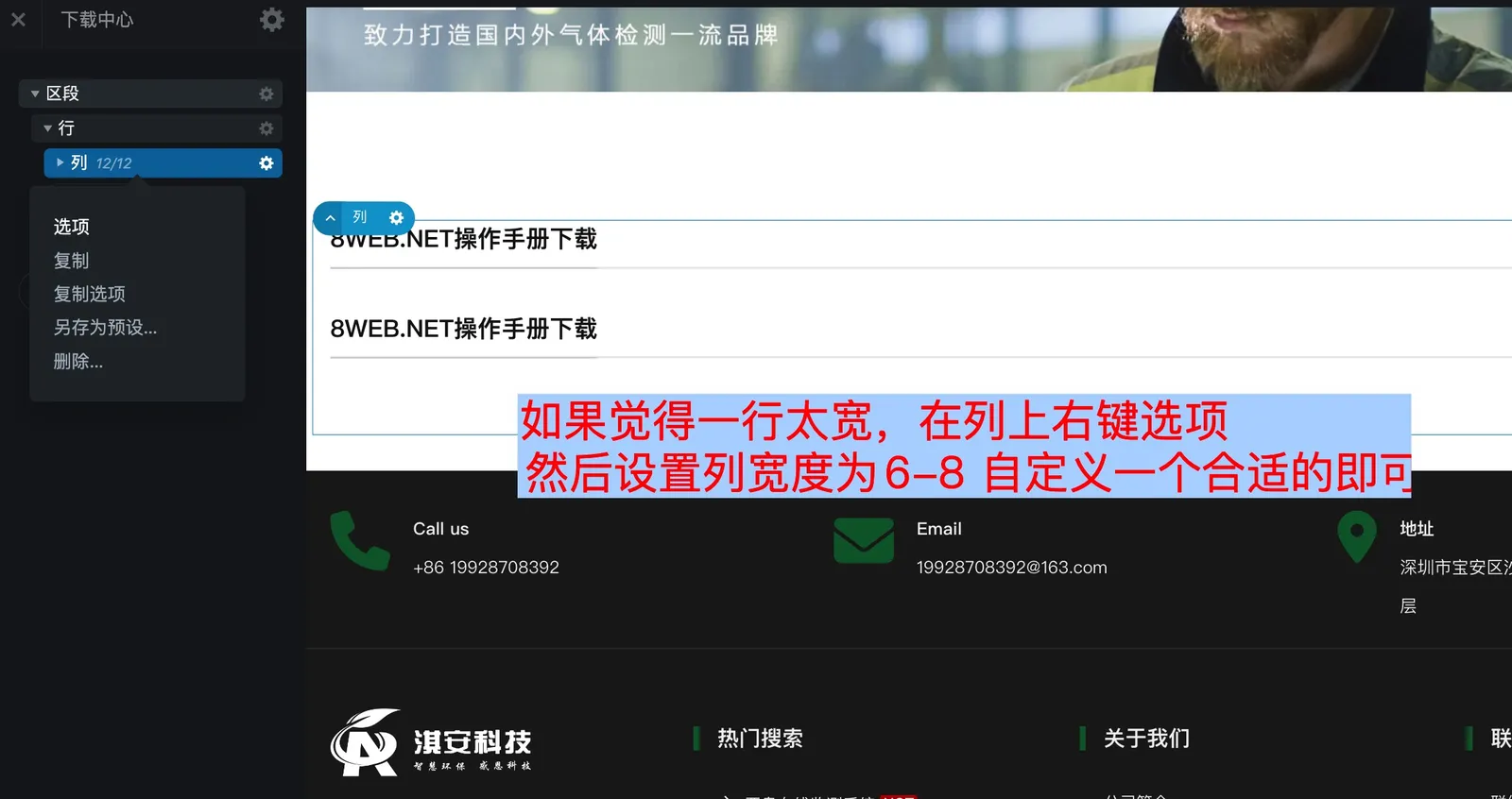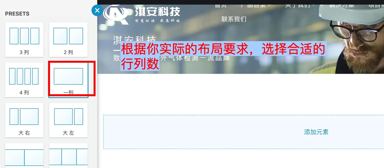 一般来说一个页面的组建都是 区段-行列(在具体的列里面添加比如文本、图片、图相框这类实际的内容组件)