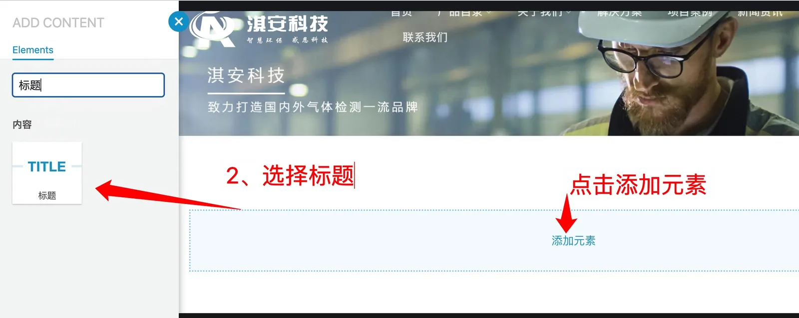 2.4、选择《标题》元素 (添加到列中) #