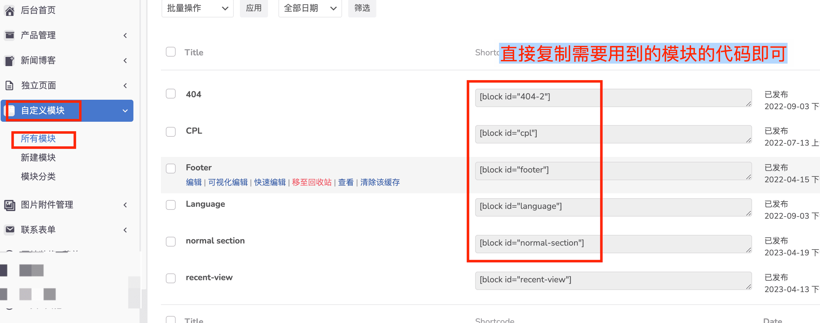 自定义模块==所有模块即可查看