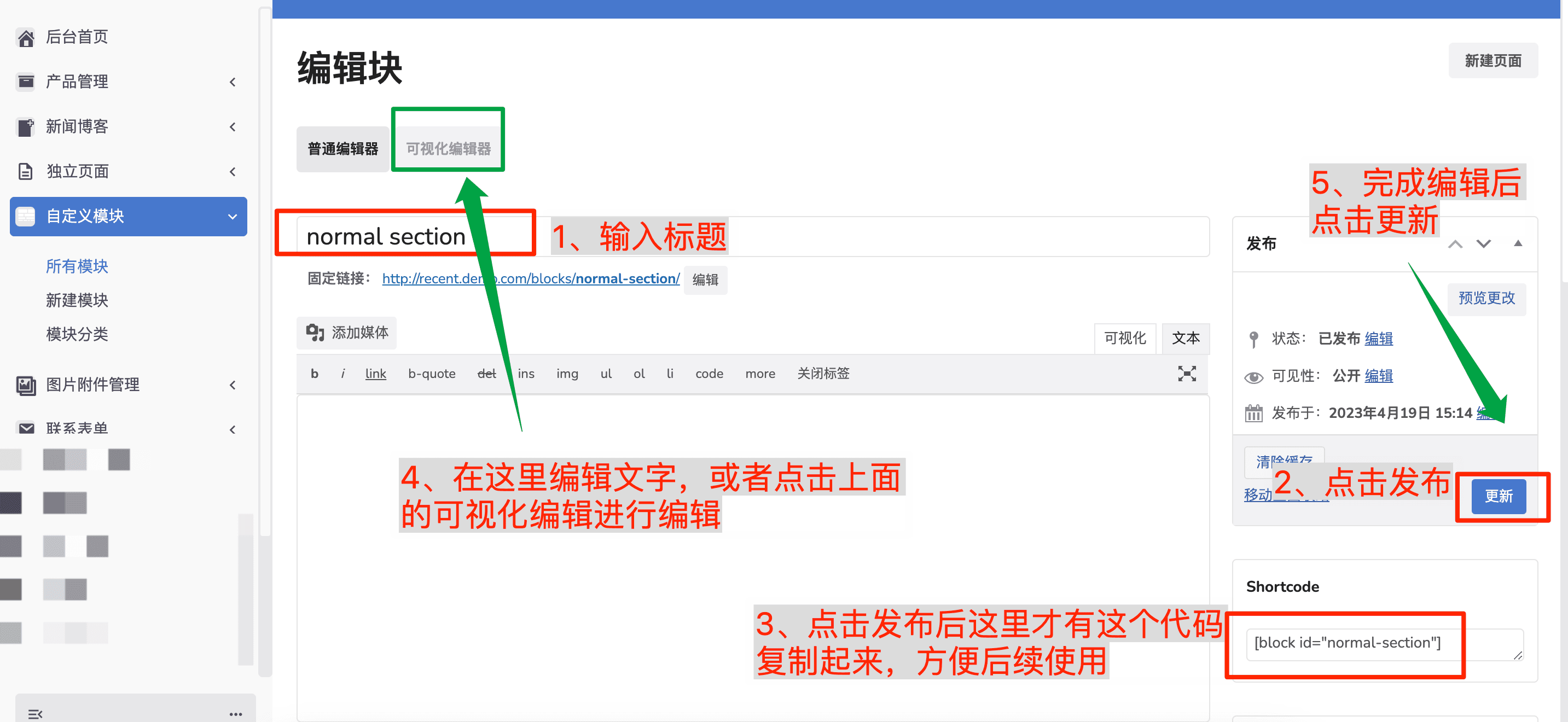 上面的第四步骤的意思,可以在编辑器的空白区域直接编写文字等内容